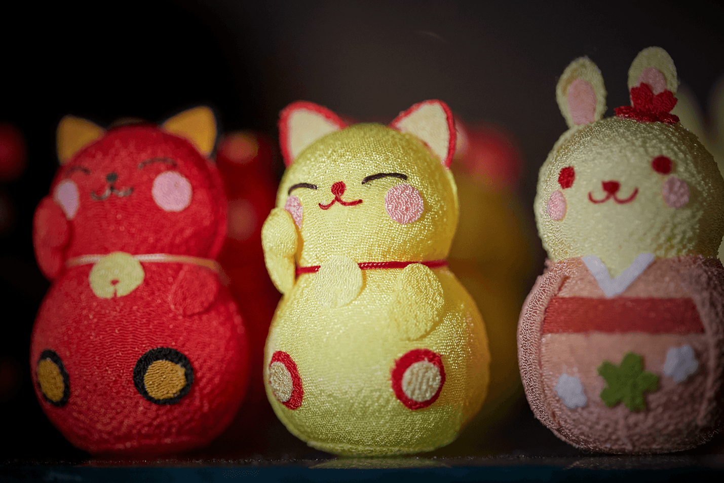 In their soft, textured grins, I find the warmth of home. Handcrafted from scraps of time and silk, these little spirits stand watch over the quiet corners of my heart, keeping every memory safe.